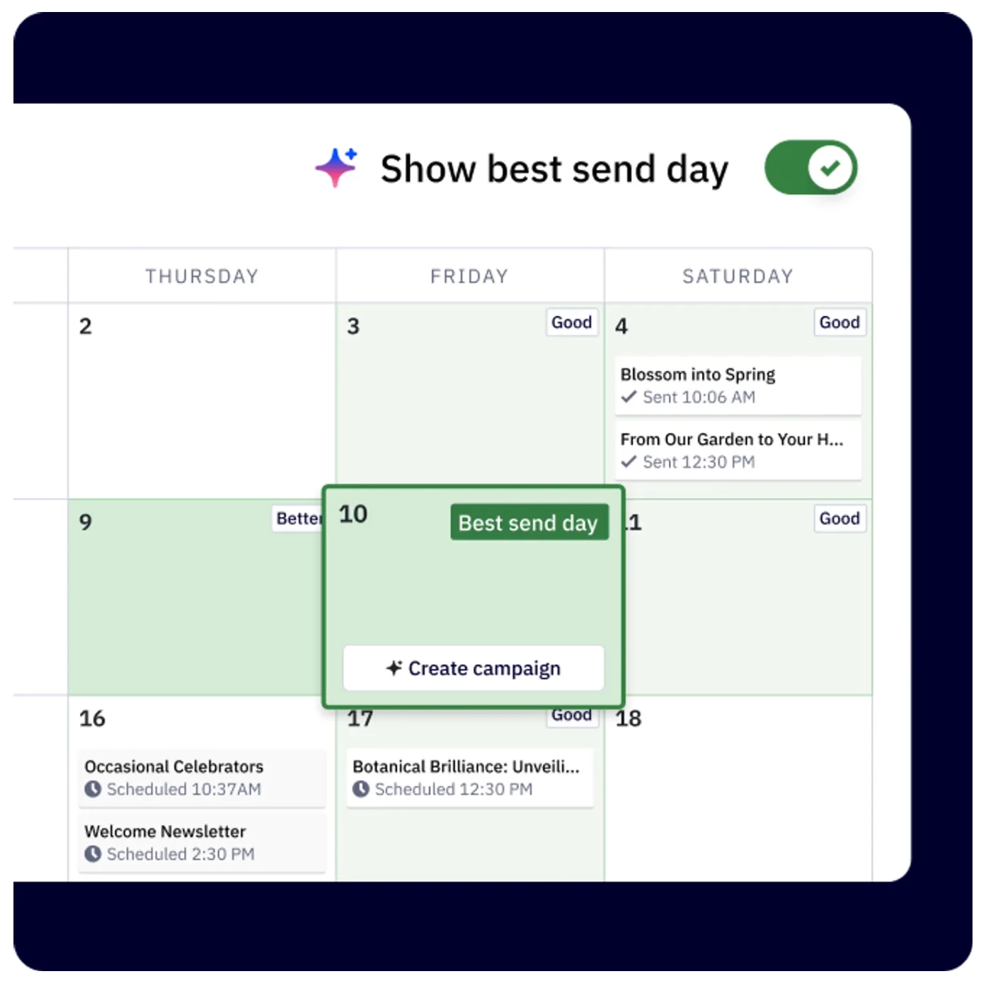 Predictive send time optimization: Instead of guessing when to send, let AI analyze each subscriber's behavior to deliver messages when they're most likely to engage.