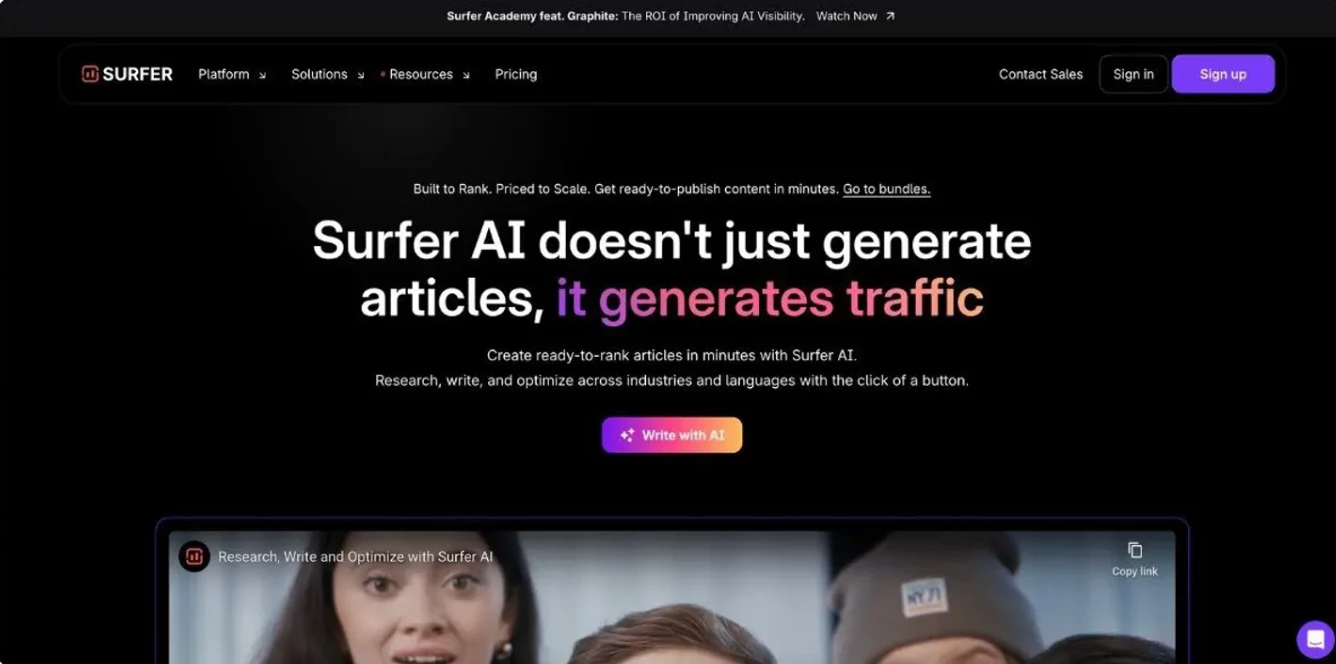 Surfer AI specializes in SEO-driven content creation. It helps marketers build briefs and optimize articles based on real-time SERP data.